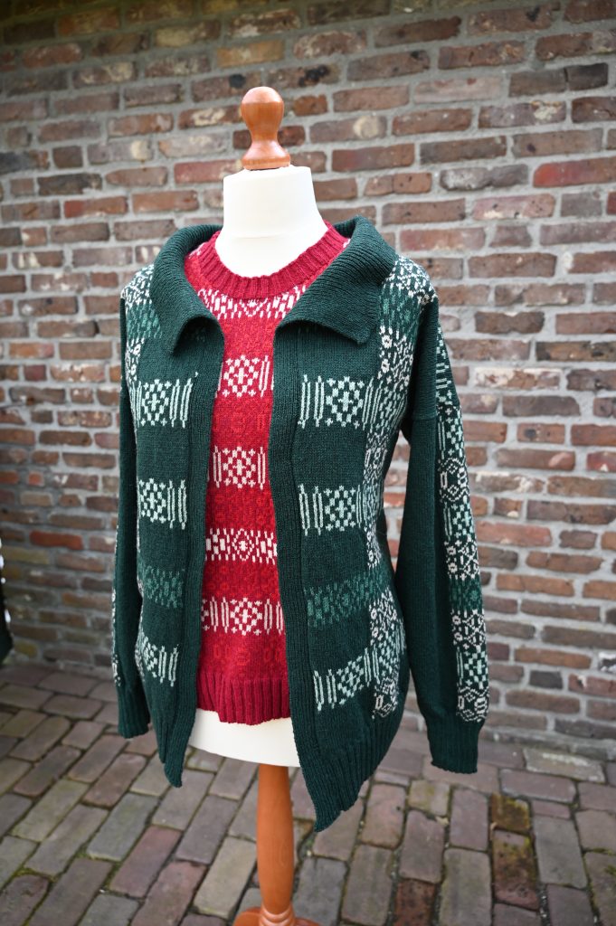 I was part of the Birchcliff Twinset test knit during fall 2024. The twinset is designed by Nic Corrigan and available on Ravelry. I knitted the Birchcliff cardigan in addition to the vest from the test knit – and planned as my Christmas outfit for 2024. My plan was to have a deep red vest and a contrasting dark green cardigan to wear with green pants. While the vest was planned in overall Fair Isle, the cardigan was planned as single motif. My time plan did not really work out. The vest was done in time, but the cardigan definitely not. I only finished the cardigan in March ’25.