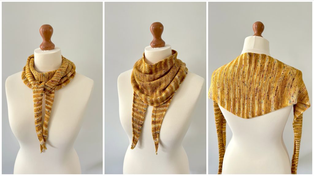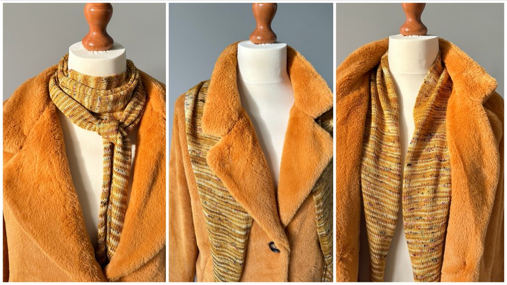 🇬🇧 Not quite a scarf, not quite a shawl, it is just a simple little knitting thing in-between the two that can be easily knitted from one to infinite skeins of yarn.